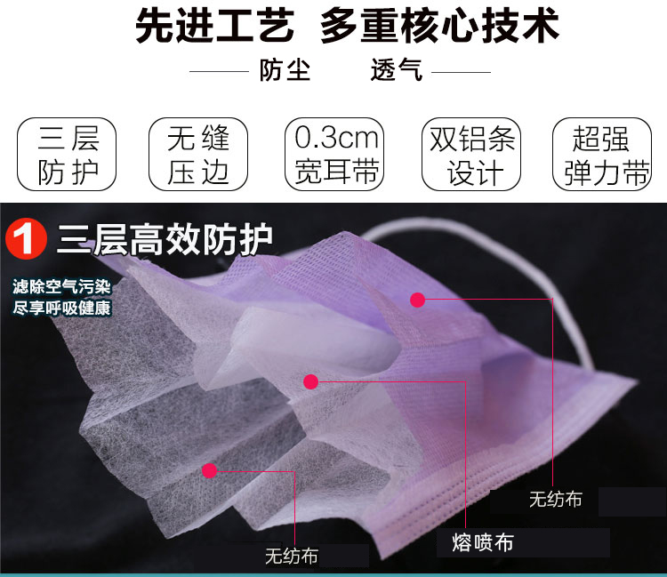 ·您當前的位置是:首頁產品中心三層橡筋耳帶無紡布口罩(粉色)[面部防護]