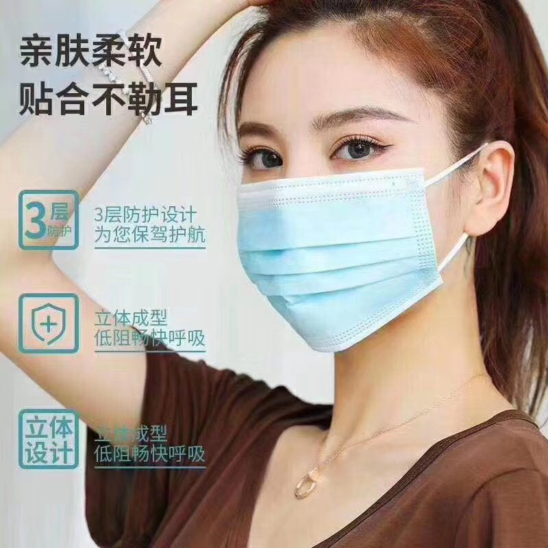 Disposable Face Mask With Printing Three layer rubber band non-woven mask (green) Mask independent plastic outer packaging Three layer rubber band earband non-woven mask (…